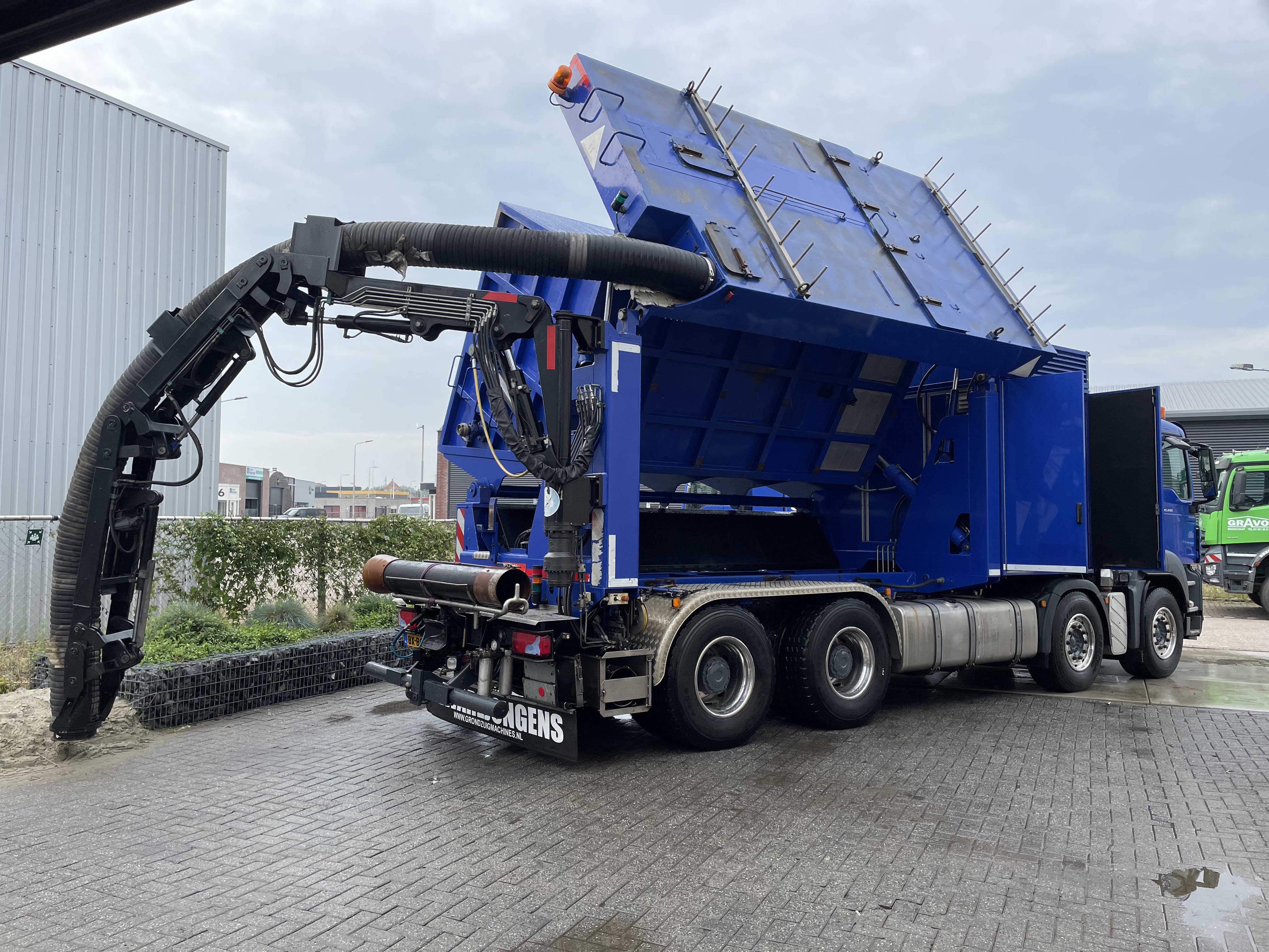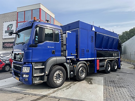 2009 MAN RSP Euro 5, Full options, Twin Fan, 10m3 container with stainless inlay, Hydraulic levelsystem, Hydrostaticdrive, 8m3 Compressor, Earth Control, HighPressurewash with soap-foam option. Once ordered to a very high standard and always kept in great condition. Freshly serviced and safety-checked. All wear parts new or coming in a sparespackage. Machine will be delivered with a complete set of airtools and suction pipes to get your job done. Directly available.